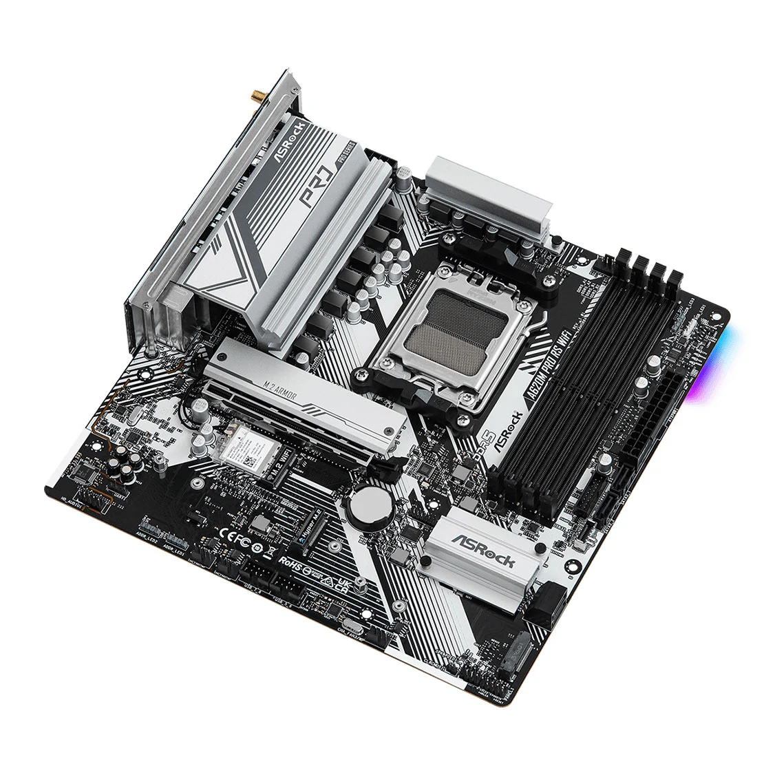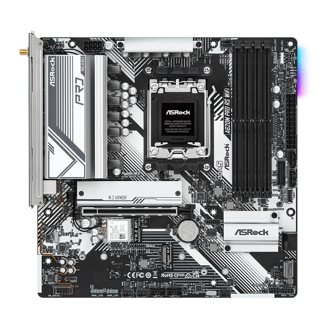 The ASRock A620M Pro RS WiFi is a feature-rich Micro-ATX motherboard designed for AMD Ryzen processors. Built on the AMD A620 chipset, it delivers excellent performance for gaming, streaming, and productivity, while maintaining great value for PC builders.