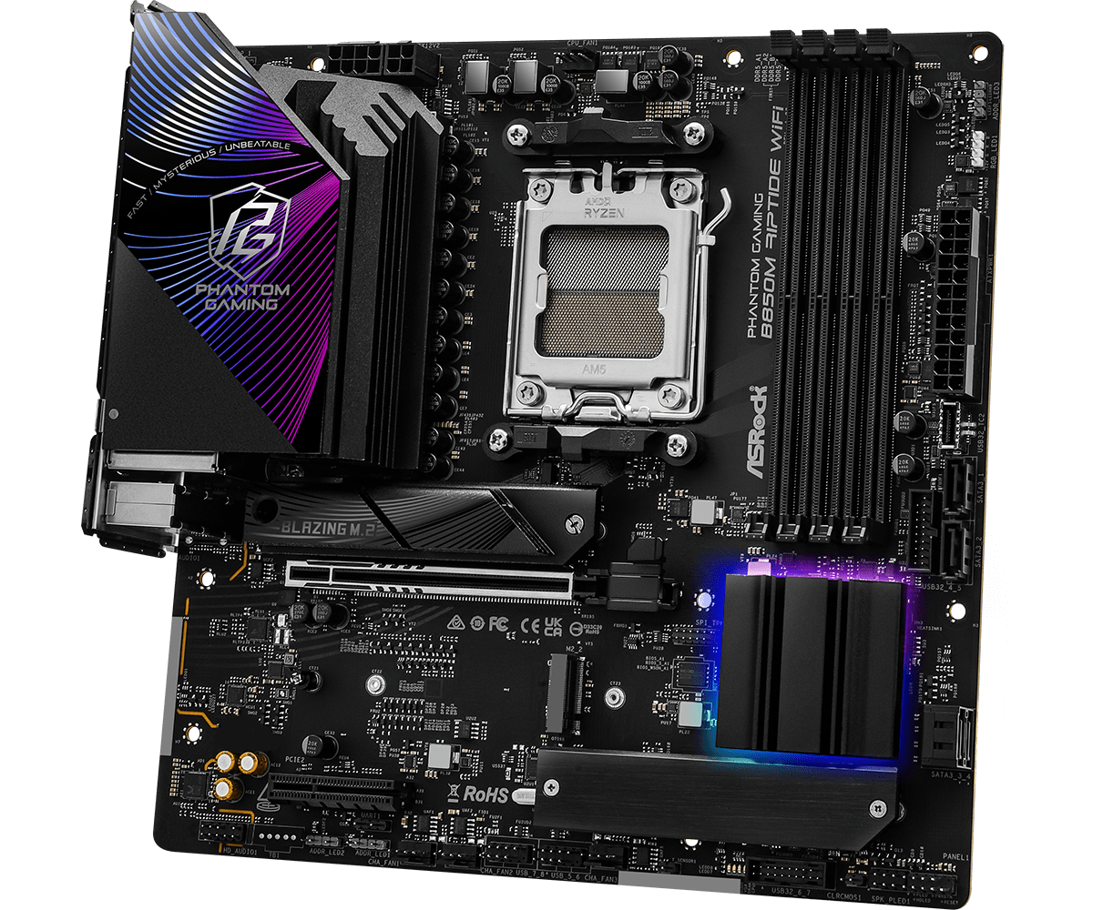The ASRock B850M Riptide WiFi is a performance-focused Micro-ATX motherboard designed for the latest AMD Ryzen AM5 processors, powered by the advanced B850 chipset. Delivering next-gen support with DDR5 memory, PCIe 5.0 graphics compatibility, and lightning-fast M.2 NVMe SSD slots, it ensures exceptional speed and efficiency for modern gaming and productivity setups.