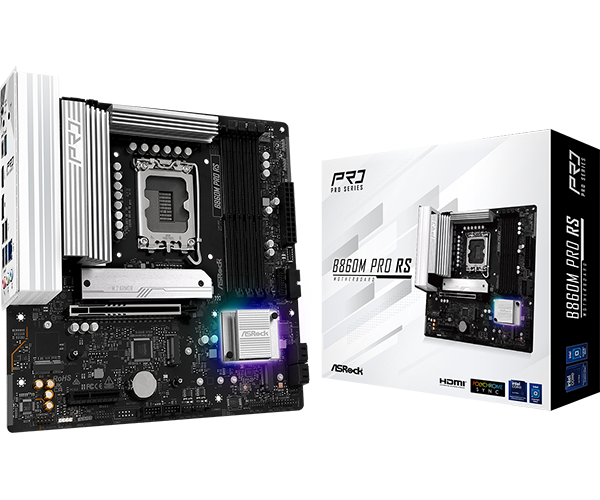 The ASRock B860M Pro RS is a reliable and feature-rich Micro-ATX motherboard designed on the Intel B860 chipset, delivering performance and stability for Intel 15th and 14th Gen Core processors (LGA 1851). Belonging to the Pro RS series, it balances affordability with premium features, making it a solid choice for both gaming and productivity setups.