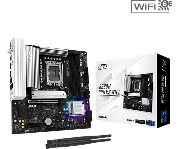 The ASRock B860M Pro RS WiFi is a compact Micro-ATX motherboard that combines performance, stability, and future-ready features for Intel-based PC builds. Powered by the Intel B860 chipset, it supports the latest Intel 15th and 14th Gen Core processors (LGA 1851), delivering reliable power and efficiency for gaming, productivity, and everyday use.
