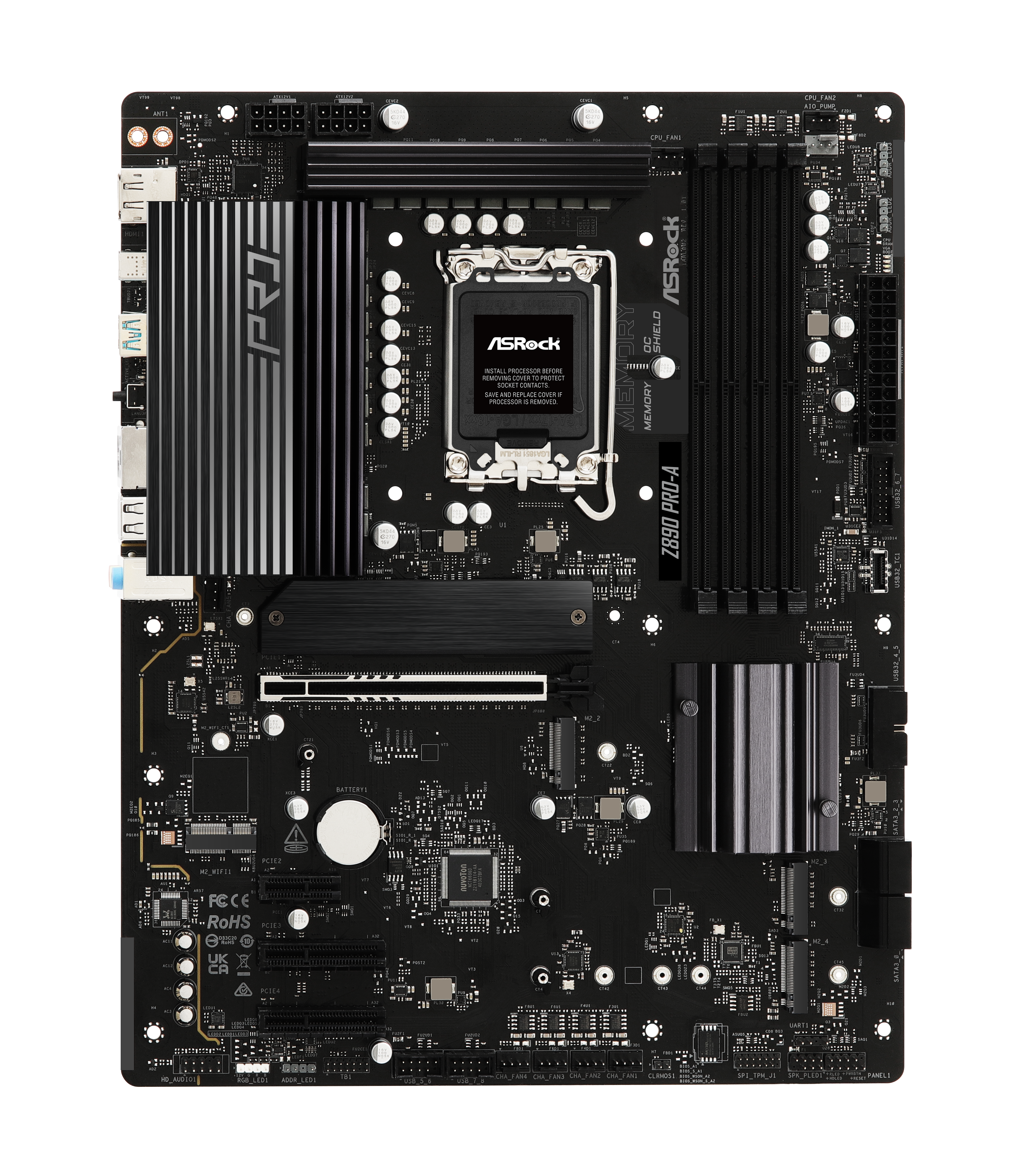 The ASRock Z890 Pro-A is a high-performance ATX motherboard designed to unlock the full potential of the latest Intel 15th and 14th Gen Core processors (LGA 1851). Powered by the Intel Z890 chipset, it combines advanced connectivity, durable design, and strong performance, making it an excellent choice for gaming and professional workloads.