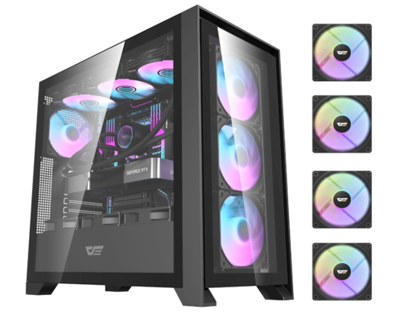 DarkFlash DRX90 ATX Case Black | Tempered Glass | 4 Pre-Installed ARGB Fans
