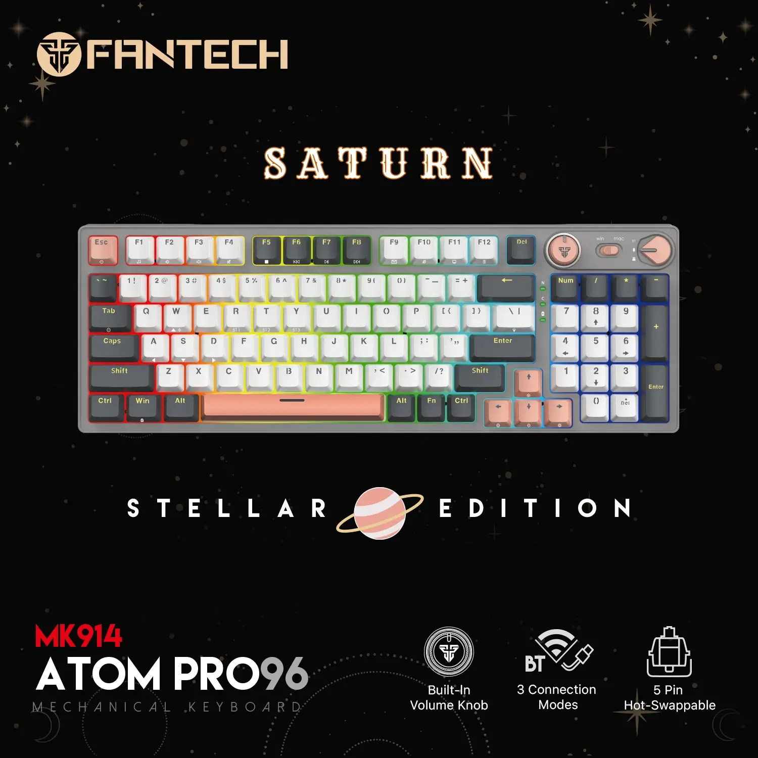 The Fantech ATOM PRO96 MK914 SATURN – Blue Switch is a 96% compact wireless mechanical keyboard designed for gamers and professionals who demand performance and style. Featuring Blue Mechanical Switches, it provides a tactile, clicky response for precise control during typing and competitive gaming.