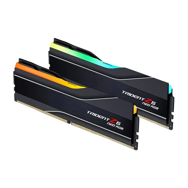 The Trident Z5 Neo features a premium black brushed aluminum heat spreader with a sleek RGB light bar, offering a perfect balance of performance, cooling efficiency, and aesthetic appeal.