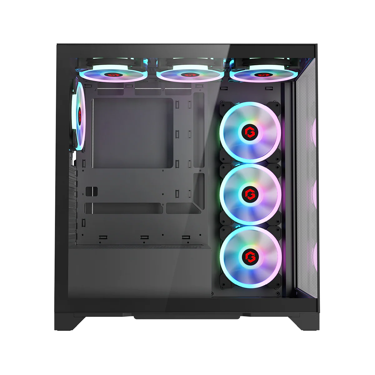 Equipped with 7 pre-installed fans, the Midnight IV Series provides optimal airflow to keep your components cool during long gaming sessions. Its spacious interior supports ATX, Micro-ATX, and Mini-ITX motherboards, multiple GPUs, storage drives, and advanced cooling solutions.