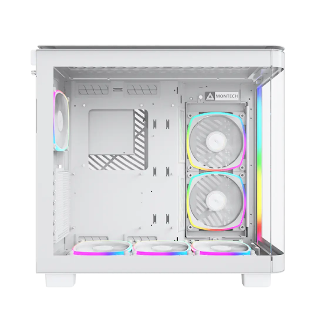 The Montech KING 95 PRO White is a premium mid-tower PC case designed for gamers, content creators, and PC enthusiasts who want both performance and style. Its tempered glass side panels elegantly showcase your components, while the high-airflow chassis ensures optimal cooling for air and liquid-cooled systems.