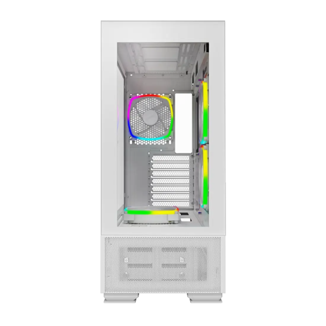 With support for multiple fan slots and radiator configurations, the Sky Two White provides flexible cooling solutions for high-performance CPUs and GPUs. The case also includes integrated cable management and multiple storage bays, keeping your build organized, clean, and visually appealing.
