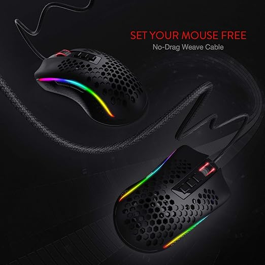The ergonomic honeycomb design not only enhances grip but also keeps your hand cool, making it ideal for marathon gaming. Built for pro-level performance, the Redragon M808 Storm Pro combines lightweight construction with powerful features.